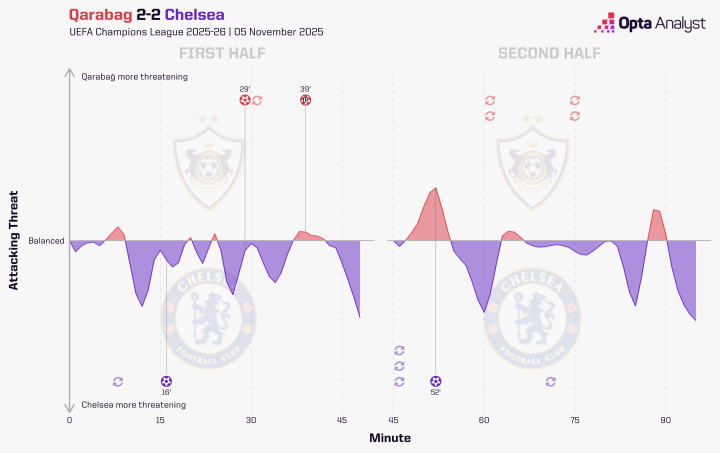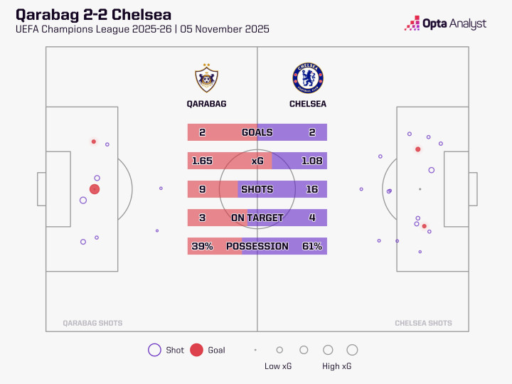 虎扑11月05日讯欧冠联赛阶段第四轮,卡拉巴赫2-2切尔西。